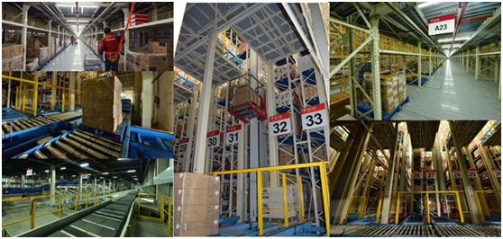 2. 多層閣樓揀貨區:采用了各種現代化設備,實現了自動補貨、快速揀貨、多重復核手段、多層閣樓自動輸送能力,實現了京東巨量SKU的高密度存儲和快速準確的揀貨和輸送能力。