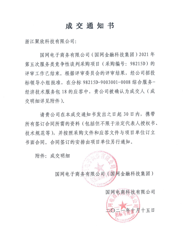 聚欣中標國網(wǎng)電子商務有限公司2022年項目,并成為其供應商。